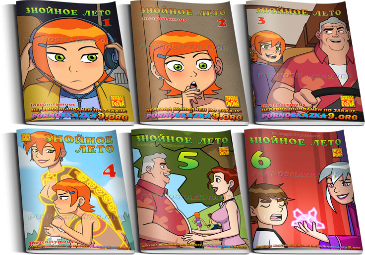 Порно комикс Знойное лето. Часть 7. Макс знакомит Бена и Гвен со своим старым другом и коллегой Уэсом Грином, где они также встречают его внучку Каю. И Бену в головы сразу приходит мысль, та самая мысль, которая приходит к нему всегда, когда у него между нок кое-что начинает шевелиться…